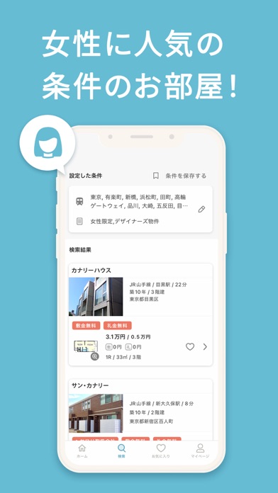 賃貸物件検索アプリ『カナリー(Canary)』の特徴の2つ目は、見やすいUIと検索のしやすさです。