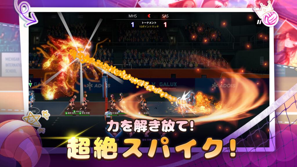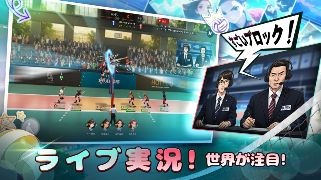 トスから繋がる高速スパイクや、ブロッキングによるカウンター攻撃など、ハイスピードで戦略的なプレイを体験できます。